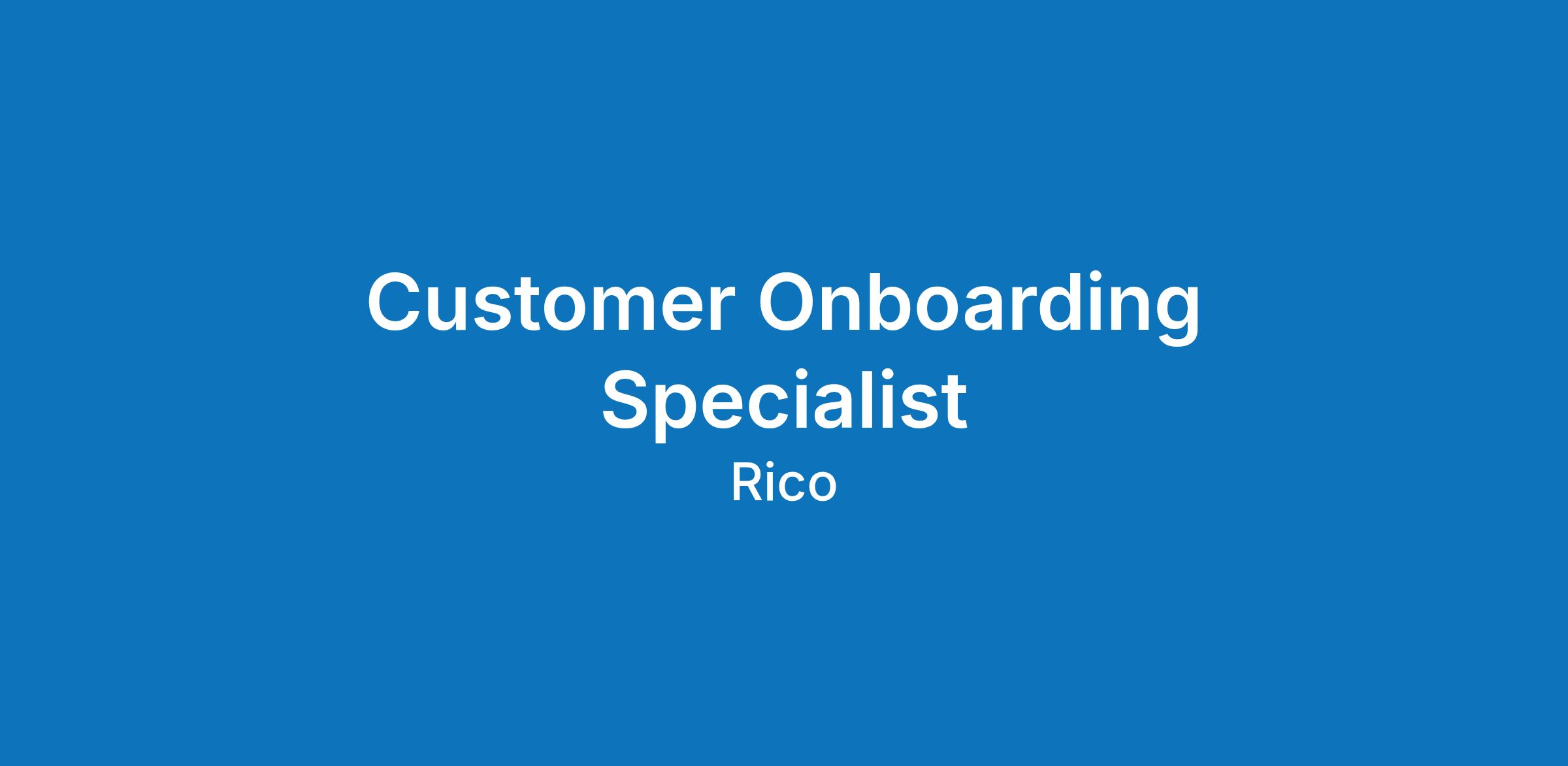 We're growing fast - and our sales pipeline is proving it. We're looking for an Customer Onboarding Specialist to join our small team and work closely with our Customer Success and Operations Manager, to make sure every new customer gets an exceptional experience on Rico's platform.