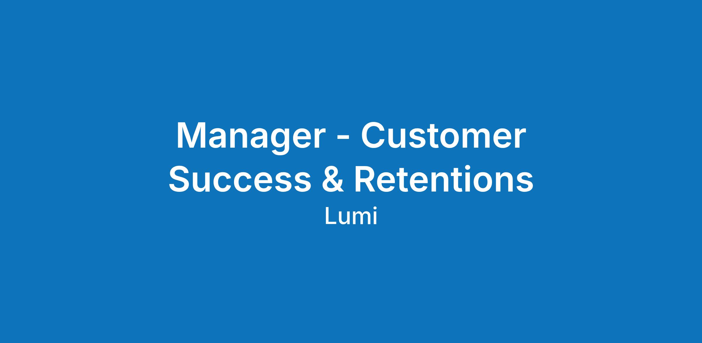 We are looking for a Customer Success Manager to lead our existing customer and retentions function, responsible for driving utilisation, repeat business, and long-term customer value across Lumi’s portfolio.
