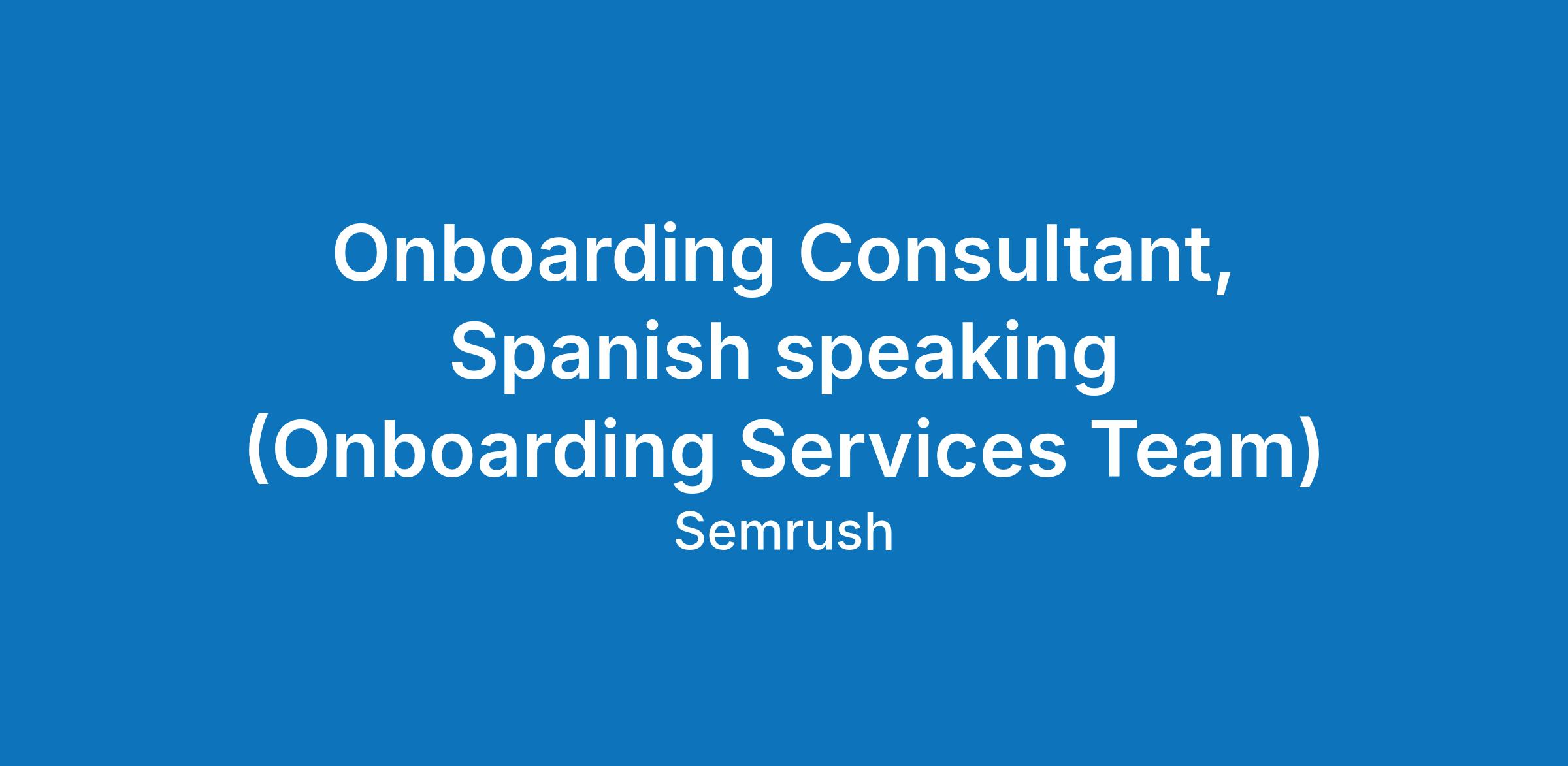 Onboarding Consultant, Spanish speaking (Onboarding Services Team)
